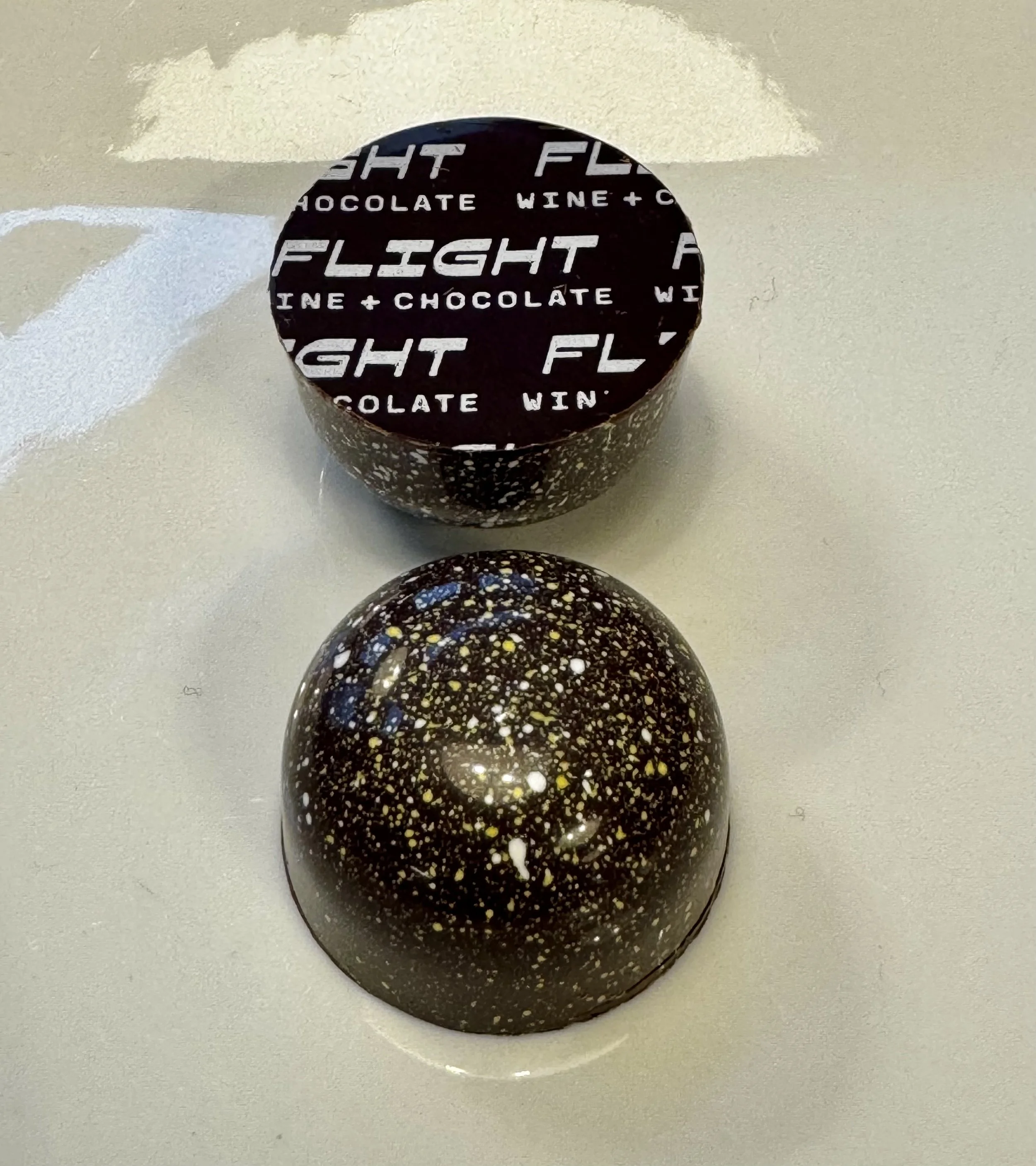 It’s time to celebrate! We combine sparkling wine reduction, coconut cream, caramelized milk chocolate, fresh vanilla bean, lemon zest, a pinch of white truffle powder, and a touch of Irish butter to get this party started. The celebratory ganache is surrounded by Flight’s 70% dark chocolate shell. Bubbles bonbon is crafted to pair beautifully with sparkling wine, blurring the lines between sweet and savory.