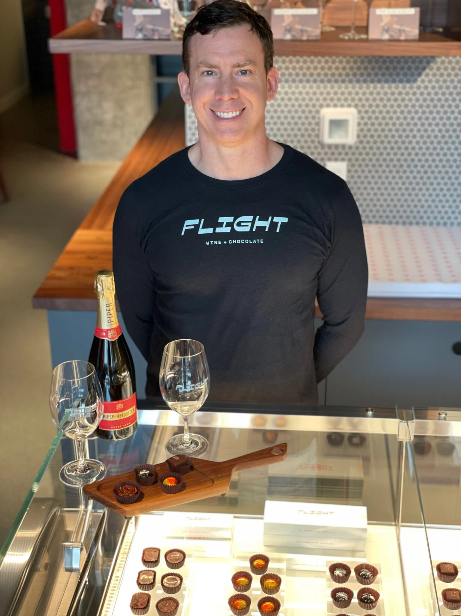 Flight Wine + Chocolate’s aim is to showcase the beauty of wine and handmade chocolates in a comfortable and inviting setting. Although we won’t always have a specific pairing of wine with every chocolate, we will make suggestions, and we encourage playing with your food. Flight is a place where preconceived notions are left at the door and new discoveries are encouraged. Flight is ‘Your Neighborhood Getaway’!